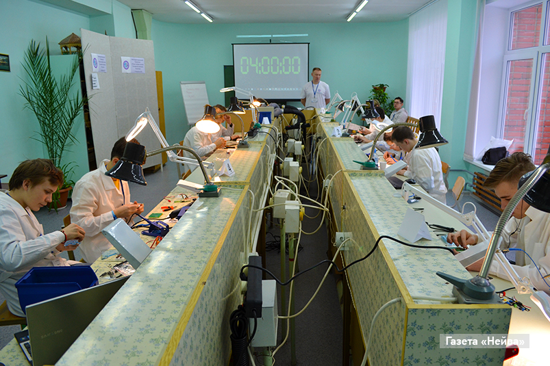 Как комментирует эксперт Константин Виноградов из НПО «Центротех», за четыре часа участникам необходимо собрать пять различных устройств по предложенной схеме из определенного набора деталей. А далее написать программу для микроконтроллера. Для разного возраста — разные задания: у старших ребят — это паяльная станция. И оценивать тут эксперты будут, кроме прочего, качество пайки!