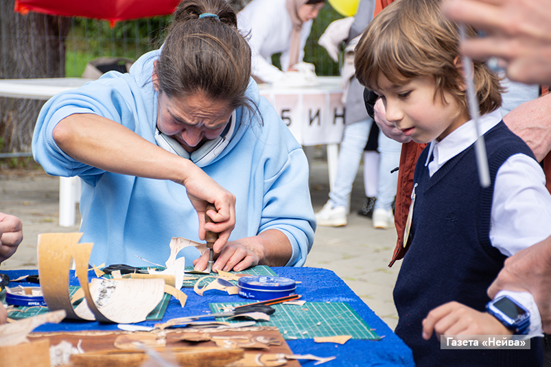 На одной из площадок, организованной СЮТом, создавали поделки из бересты.