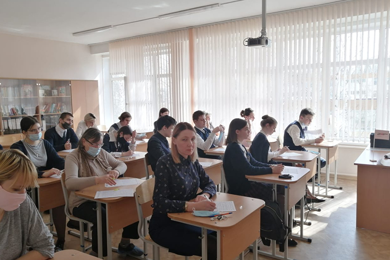 Ученики, родители и учителя городской гимназии, лицея № 58, школы села Тарасково и деревни Починок писали диктант в режиме онлайн.