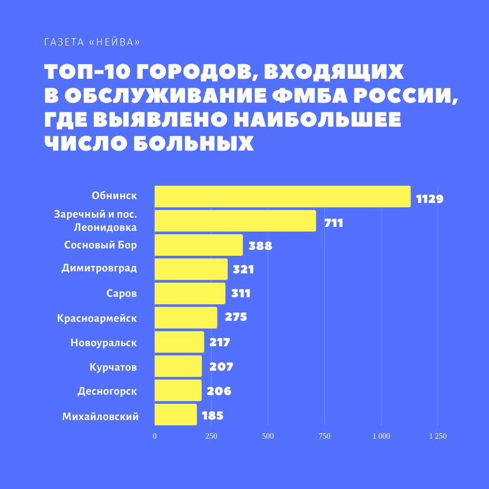 Как выглядит список топ-10 по территориям ФМБА по России, смотрите ниже.