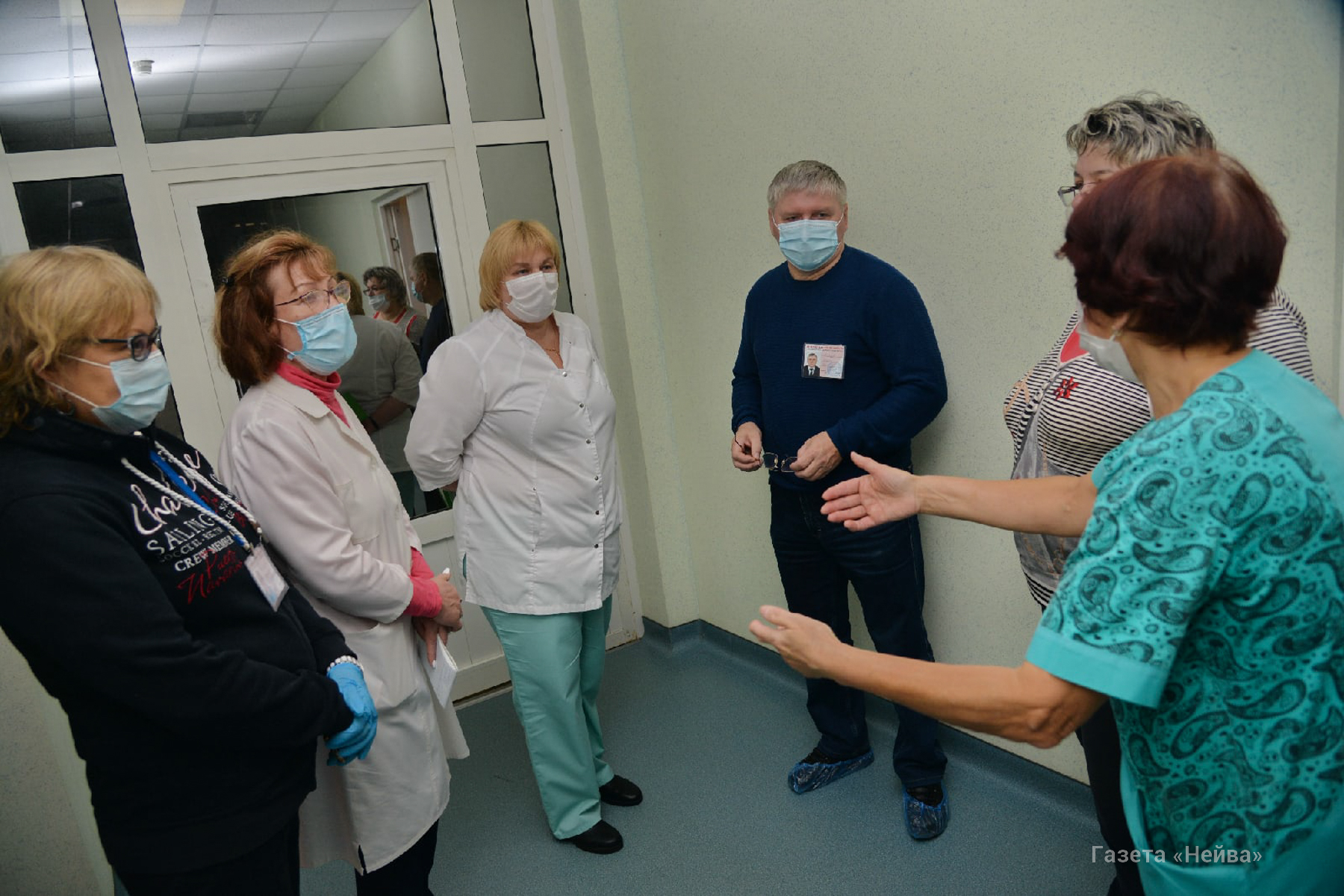 Андрей Морозов прошёл маршрутом движения медиков, оценив систему фильтрации между чистой и красной зоной. Заходить в чистую зону, на работу, медики будут из «высотки» хирургического корпуса, через тоннель. После чего переодеваются на втором этаже и уже в специальных комбинезонах поднимаются на третий этаж, в красную зону. Возвращаются же другим путём – через санпропускник.