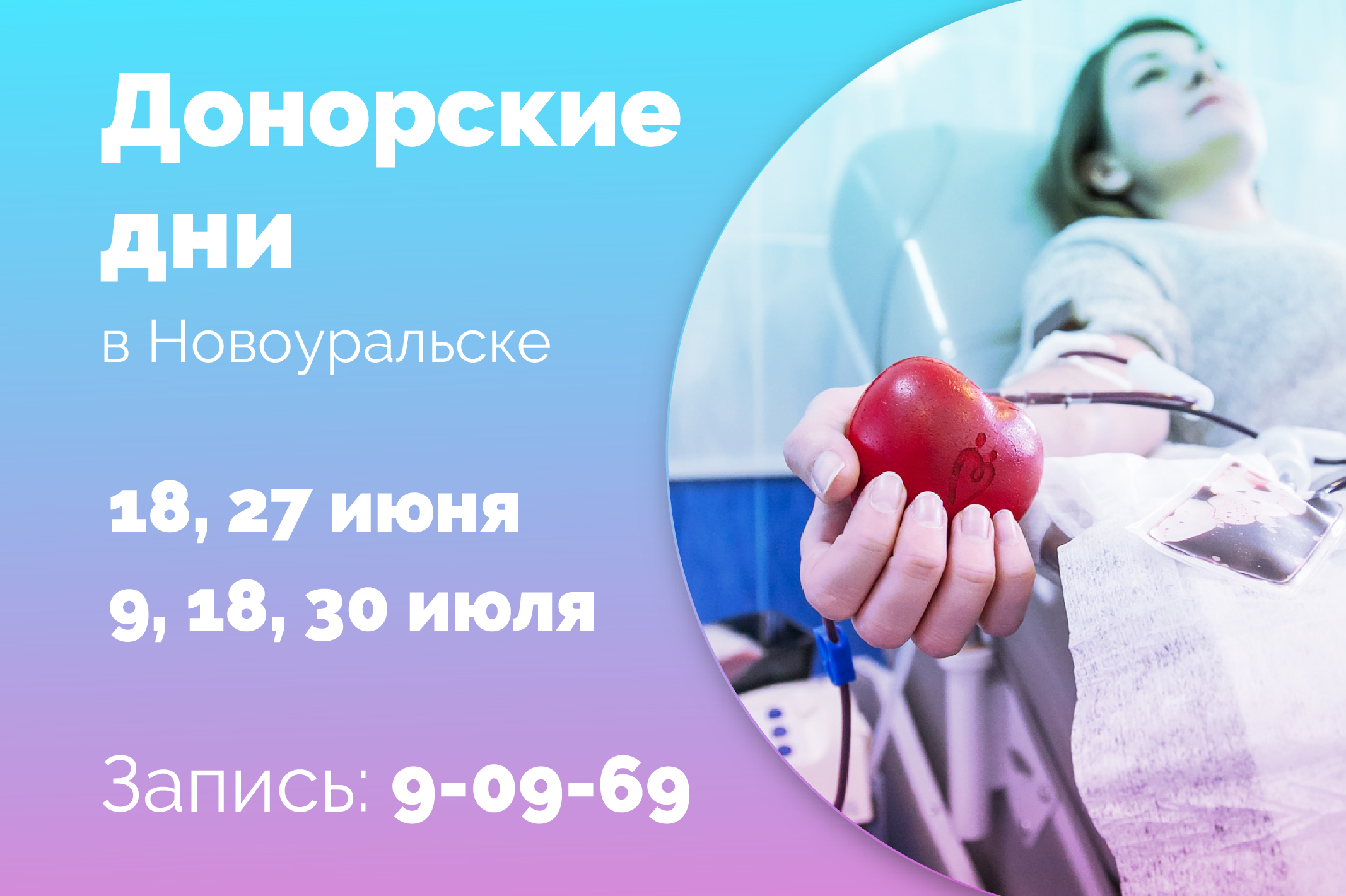 Донорские дни проводятся в соответствии с утверждённым графиком - 3 раза в месяц. Донорские дни: в июне - 18, 27 числа, в июле — 9, 18, 30 числа.