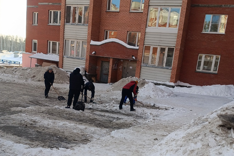 На фото тот самый момент, когда жители домов Ленина, 113 и 115, не дождавшись уборки от управляющей компании, вышли во двор с лопатами и сами расчистили парковку от снега.