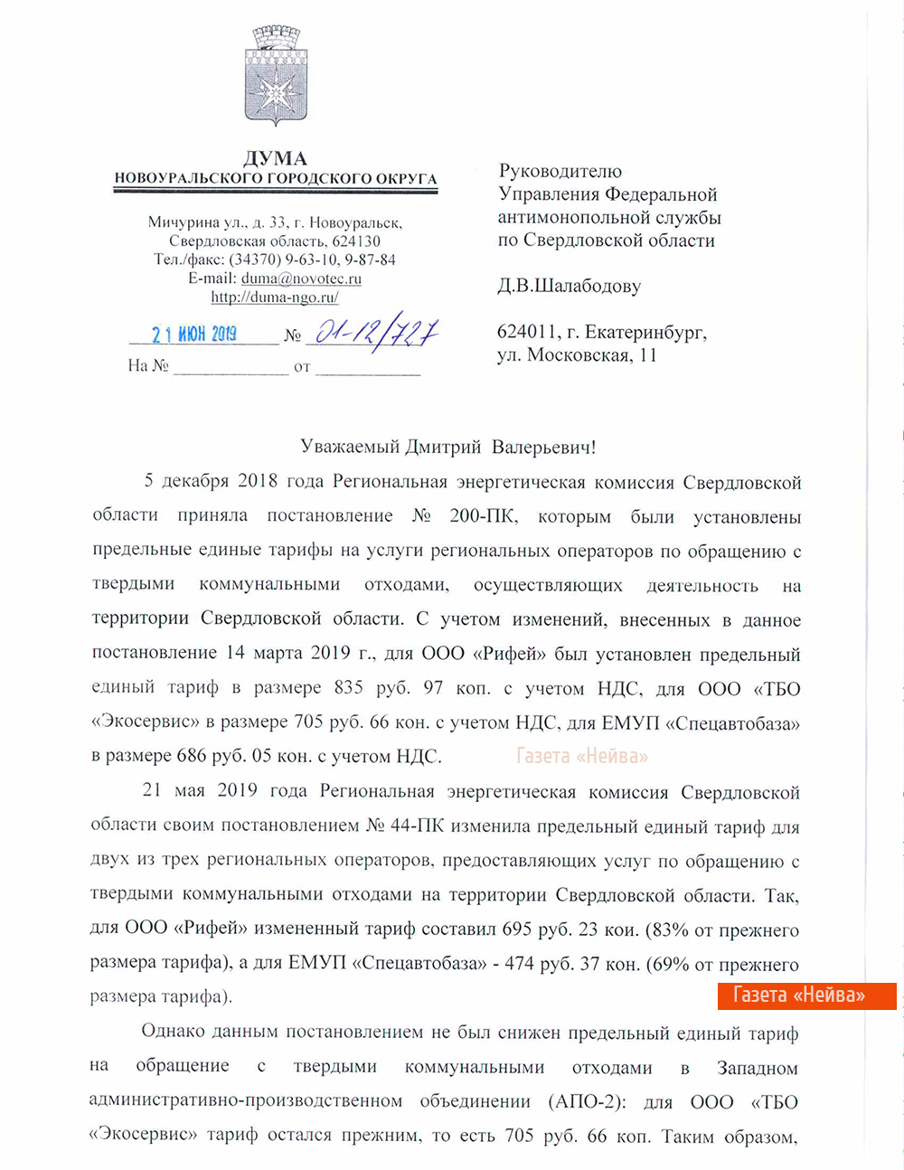 Напомним, именно в ФАС с письмом о проверке ценообразования на тарифы для Новоуральска, в июне этого года обращались депутаты Думы НГО.