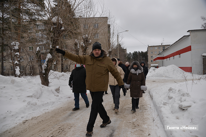 И 27 января комиссия предметно вместе с жильцами, кадастровыми картами на руках и схемами расположения коммуникаций прошлась по прилегающей территории. Рассмотрели несколько возможных точек установки наземных контейнеров, поскольку заглублённые действительно некуда вписать. Пришли к предварительному решению, которое можно описать так. В течение недели-двух комитет архитектуры, УЖК «Новоуральская» и КЖКХ оценят возможные точки установки новой площадки.
