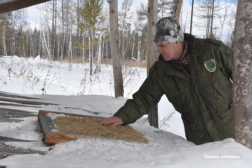 Зимой зёрна дают кабанам и боровой дичи — тетеревам, глухарям, рябчикам. По осени кабанам везёт больше: им достаются овощи с грядки (картофель, морковь, яблоки и то, что принесут сердобольные садоводы).