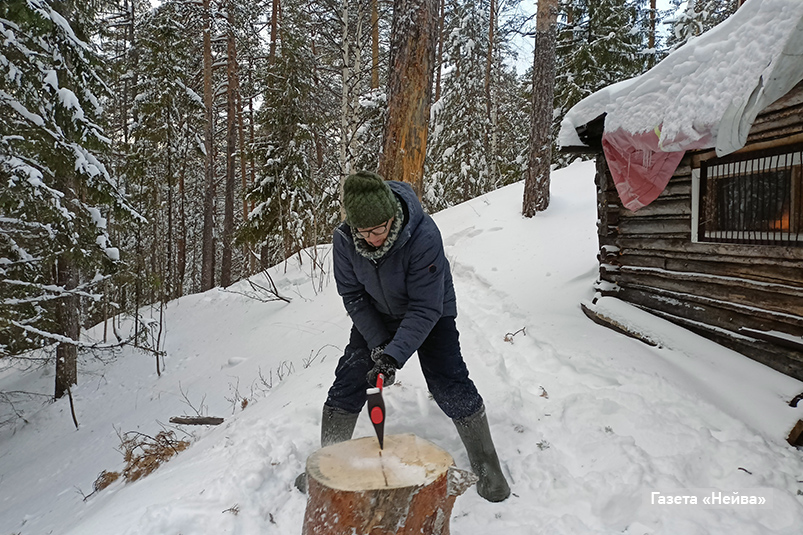 Шли мы по сугробам два километра примерно час-полтора. И вот она, лесная избушка, прикорнувшая под снежным одеялом! Не мешкая, мы забрались в домик. Парни начали колоть дрова, а девчонки готовить быструю еду, чтобы и самим перекусить, и мужчин накормить. Зажгли свечи, добавили уюта и антуража.