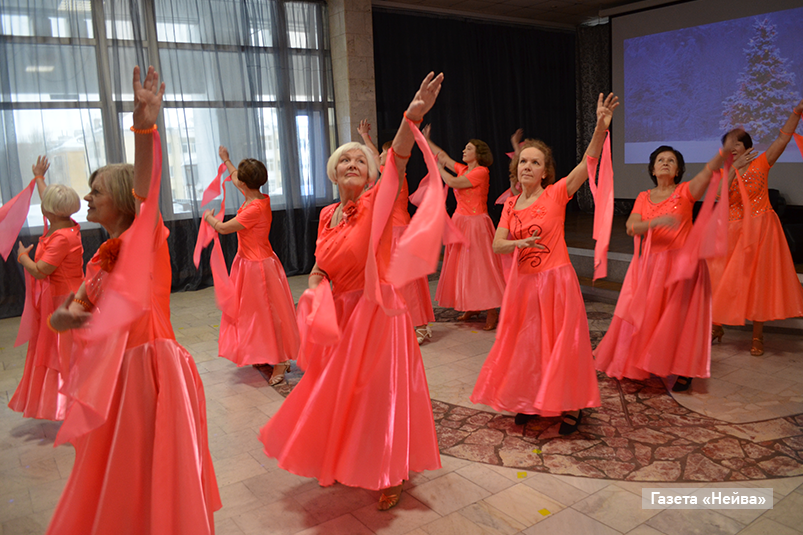 Оказалось — многому! Как приятно было посмотреть на участниц танцевального направления проекта! Грациозно кружились они в ритме медленного вальса. Осанка, улыбки, ритмика — все было прекрасно! Да и пение — не просто развлечение! Развивает дыхание, создает позитивный настрой. Великолепный дуэт Надежды Овчаренко и Валентины Захаровой, исполнивших песню «А снег идет», — тому подтверждение.