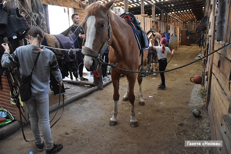 Марии помогают молодые ребята, которые приезжают сюда из Новоуральска: они ухаживают за лошадьми, выгуливают их и с энтузиазмом выполняют работу в конюшне. Компания помощников хорошая: 15 человек.