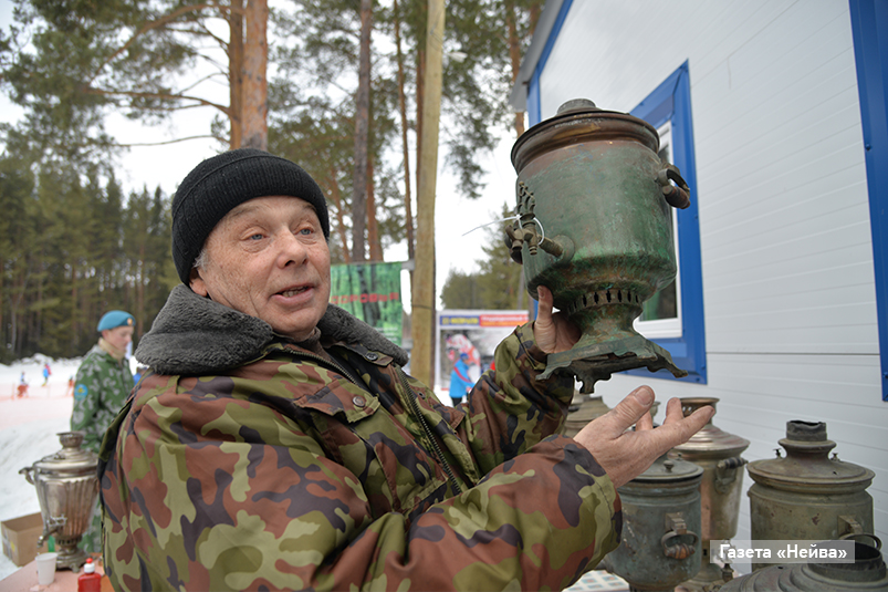 По этому делу мы с ним и пересеклись на одном из спортивных праздников у лыжной базы посёлка. Он раздувал сапогом топку самовара, постоянно отвлекаясь, чтобы поздороваться с друзьями-знакомыми. А таковых — почитай весь посёлок. Подойдёт товарищ, и Леонид Александрович ему чайку или сбитня нальёт. Рукопожатия. Улыбки. Слово за слово. И снова хлопочет над самоварами. В этот праздник на базе он впервые выставил добрую половину своей коллекции меднобоких красавцев. Основная их часть, конечно, уже нерабочие.