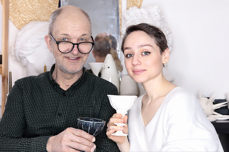 — Сначала была серия посуды с оттисками живых растений «Уральское разнотравье». Затем мы решили опереться на художественный опыт Малевича: объединяли квадрат с кругом, использовали контрастные цвета, искали новые формы... Потом Вера придумала сопровождать наши кружки графикой и строчками из стихов известных поэтов. И, наконец, родилась серия, которую условно можно назвать «Ренессанс». Раньше мы пользовались белой глиной из Донбасса, а сейчас достать ее проблема. В итоге начали искать и пробовать другие материалы. Так пришли к новой эстетике — назовем ее «шекспировской».