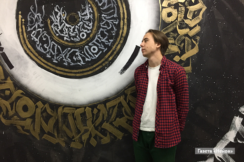 В моем окружении никто этим не занимался. А я вот как-то в инстаграме наткнулся на работы начинающего художника-каллиграфа, и меня это зацепило. Сидел дома и разрисовывал фанерки, на холсты, понятное дело, денег не было. Да я и в художественную школу ни разу не ходил. Просто приходил домой из школы и много рисовал.