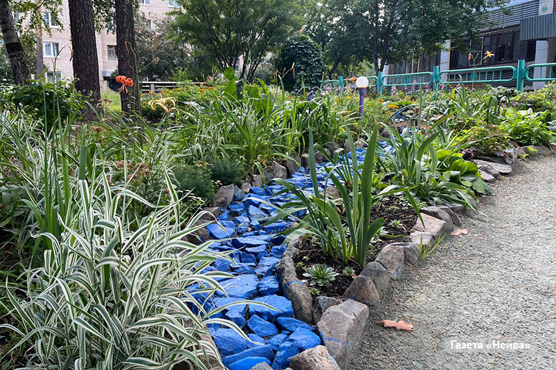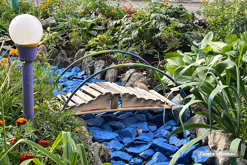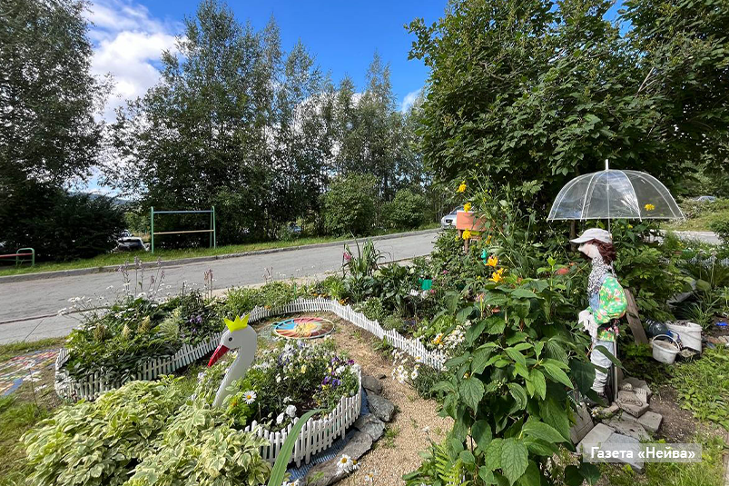 Это стихи Татьяны Феоктистовой, которая не только искренне любит свой «рай», но и старательно трудится над его благоустройством. Самый цветущий двор года-2024 находится на улице Сергея Дудина, 3. В этом году зеленый «рай» радует глаз аркой и необычными инсталляциями. Здесь настоящая принцесса, потупив взор, скромно принимает комплименты ухажера, там — встречает жильцов синяя река. Жители дворика с гордостью говорят о Татьяне Феоктистовой. А сама Татьяна Ивановна, смущаясь, говорит, что это победа общая.