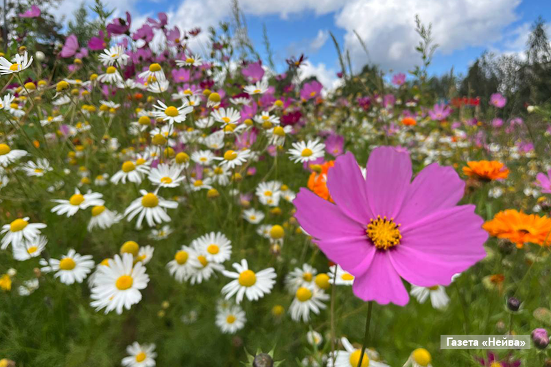Поляна из цветов на Октябрьской, 4 выросла из небольшой клумбы, которую своими руками в 2009 году перед домом посадила Татьяна Богданова. Скромные ромашки, неприхотливая календула, загадочные космеи всё лето создают настроение при входе во дворик. Татьяна Алексеевна очень любит эти полевые цветы. А спустя столько лет уже не только жителей двора, но и воспитанников соседнего детского сада с их родителями встречает целая «Татьянина поляна».