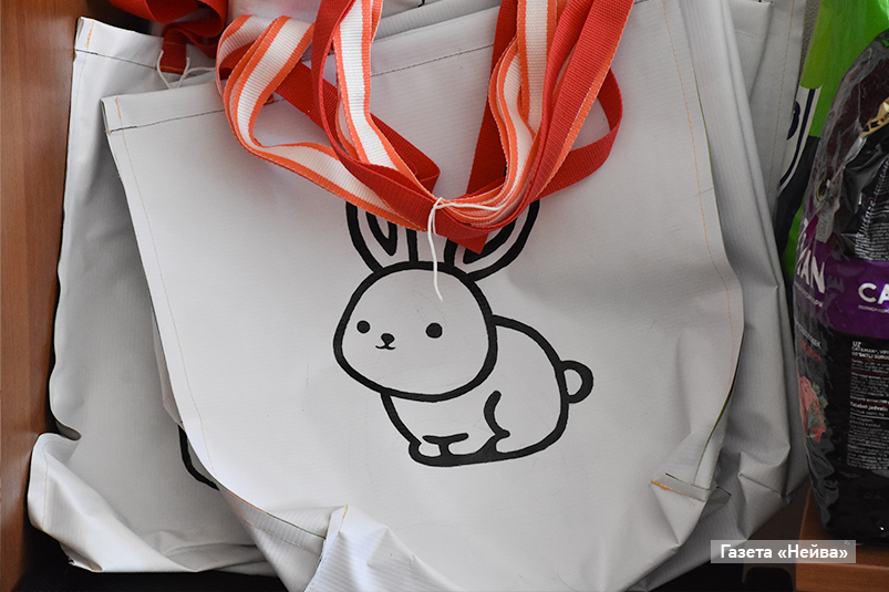 Сумочки были на любой вкус: с изображениями кроликов, котиков, гусей, забавных мемов. Их Кристина наносила вручную с помощью акриловой краски. Корм в обмен на эксклюзивную сумку приносили и коллеги, сотрудники УЭХК, и школьники, и друзья, и знакомые Кристины.