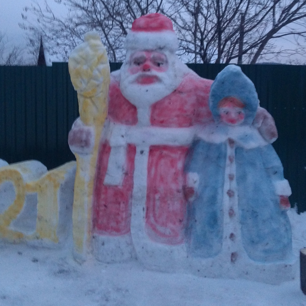На этот раз он решил порадовать садоводов с/т «Южное». Но работать пришлось в экстремальных условиях, ведь снега в начале декабря практически не было. Материал для будущих скульптур они вместе с председателем садоводства Э. Курзановым собирали по всей округе…
