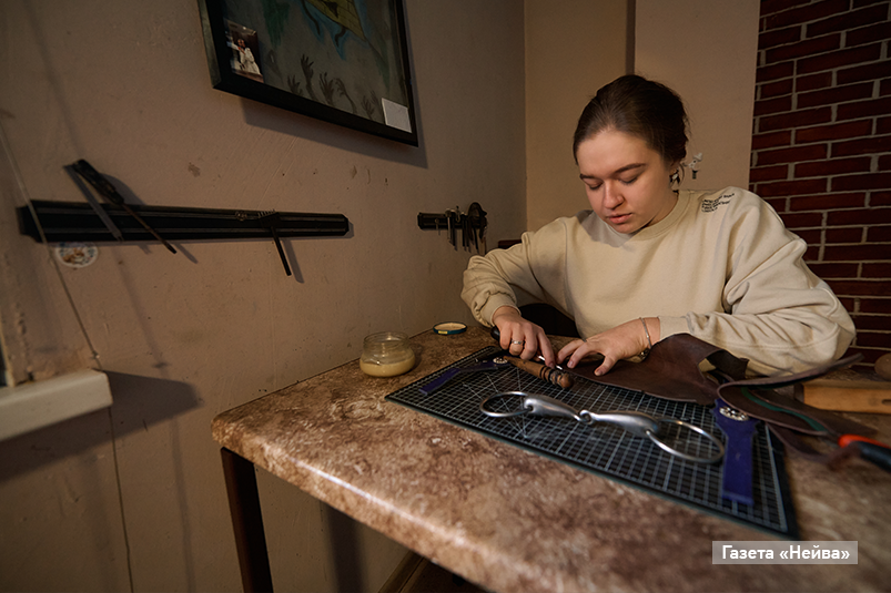 Шитьё уздечек, да и в принципе шорное дело — второе увлечение Вари, начавшееся с любви к лошадям и выросшее сегодня во что-то более большое. Начинала Варя с новогоднего подарка кожи и инструментов, тематических сообществ в сетях, и вот уже почти шесть лет занимается этим, не сказать что подходящим для нежных женских рук, делом.
