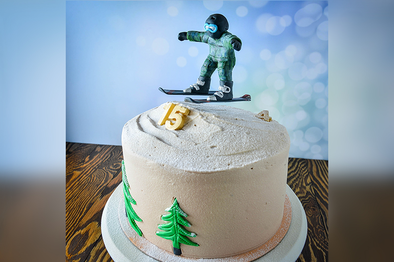 Торт «Горнолыжник»: декор — фигурка мальчика-именинника — изготовлена по его фотографии! Меня, к примеру, поразил торт «Совершеннолетие» — с изящной фигуркой девушки, сидящей на бело-розовом «облаке» из крема.