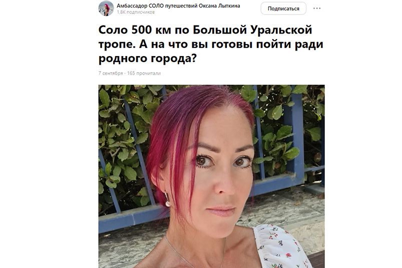 О планах соло-путешественницы из Миасса Оксане Лыткиной написал портал Ревда-инфо.