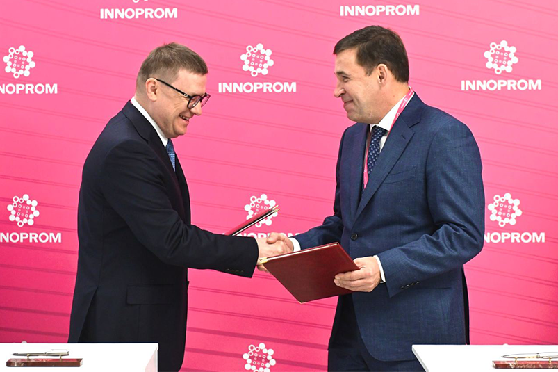 Губернатор Свердловской области Евгений Куйвашев и глава Челябинской области Алексей Текслер в первый день работы Международной промышленной выставки ИННОПРОМ-2022 в Екатеринбурге подписали соглашение, направленное на повышение транспортной доступности между регионами.