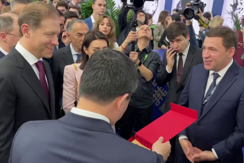 Вице-премьер - глава Минпромторга РФ Денис Мантуров посетил стенд Свердловской области на выставке «ИННОПРОМ. Центральная Азия». Евгений Куйвашев рассказал Денису Мантурову о промышленных достижениях Свердловской области и пригласил его вместе с заместителем Премьер-министра Узбекистана Жамшидом Ходжаевым на Международную неделю моды UF LAB в Екатеринбурге.