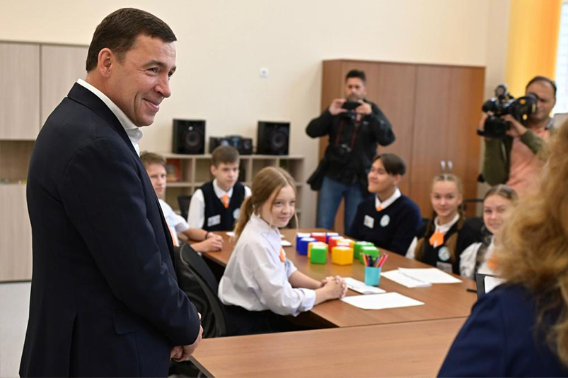 Губернатор Евгений Куйвашев 1 сентября провёл урок для учеников 10-го класса новой школы в Берёзовском.