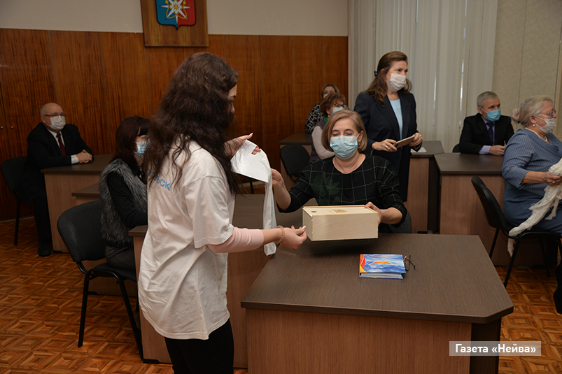В новоуральской студии глава НГО Владимир Цветов также поздравил собравшихся общественников, после чего им были вручены подарки от губернатора и администрации НГО.