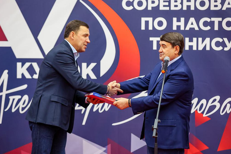 Помощник Президента РФ, первый вице-президент Олимпийского комитета России Игорь Левитин и губернатор Свердловской области Евгений Куйвашев 2 ноября дали старт пятым всероссийским и международным соревнованиям по настольному теннису «Кубок Александра Захарова», которые проходят на базе детско-юношеской спортивной школы «Лидер» в Верхней Пышме.