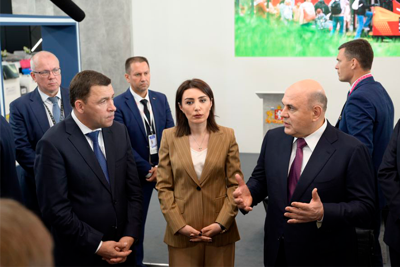 Глава региона презентовал стенд Свердловской области Председателю Правительства РФ Михаилу Мишустину, Премьер-министру Республики Беларусь Роману Головченко, Председателю Кабинета Министров Киргизии — Руководителю Администрации Президента Киргизии Акылбеку Жапарову и Премьер-министру Таджикистана Кохиру Расулзода. Гостей познакомили с перспективными проектами Среднего Урала: с первой в современной России межмуниципальной трамвайной линией Екатеринбург-Верхняя Пышма, разработками Инжинирингового центра цифровых технологий машиностроения Уральского федерального университета и другими.