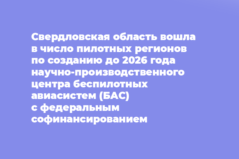 Свердловская область вошла в число пилотных регионов по созданию до 2026 года научно-производственного центра беспилотных авиасистем (БАС) с федеральным софинансированием. Об этом первый заместитель губернатора Свердловской области Алексей Шмыков сообщил на совещании по вопросу развития отрасли в регионе.