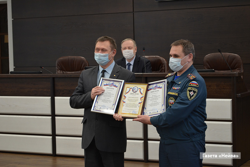 Владимир Цветов вручил дипломы победителям областных конкурсов, а также переходящие кубки и дипломы представителям особо отличившихся в сфере ГО и ЧС организаций и учреждений нашего округа.