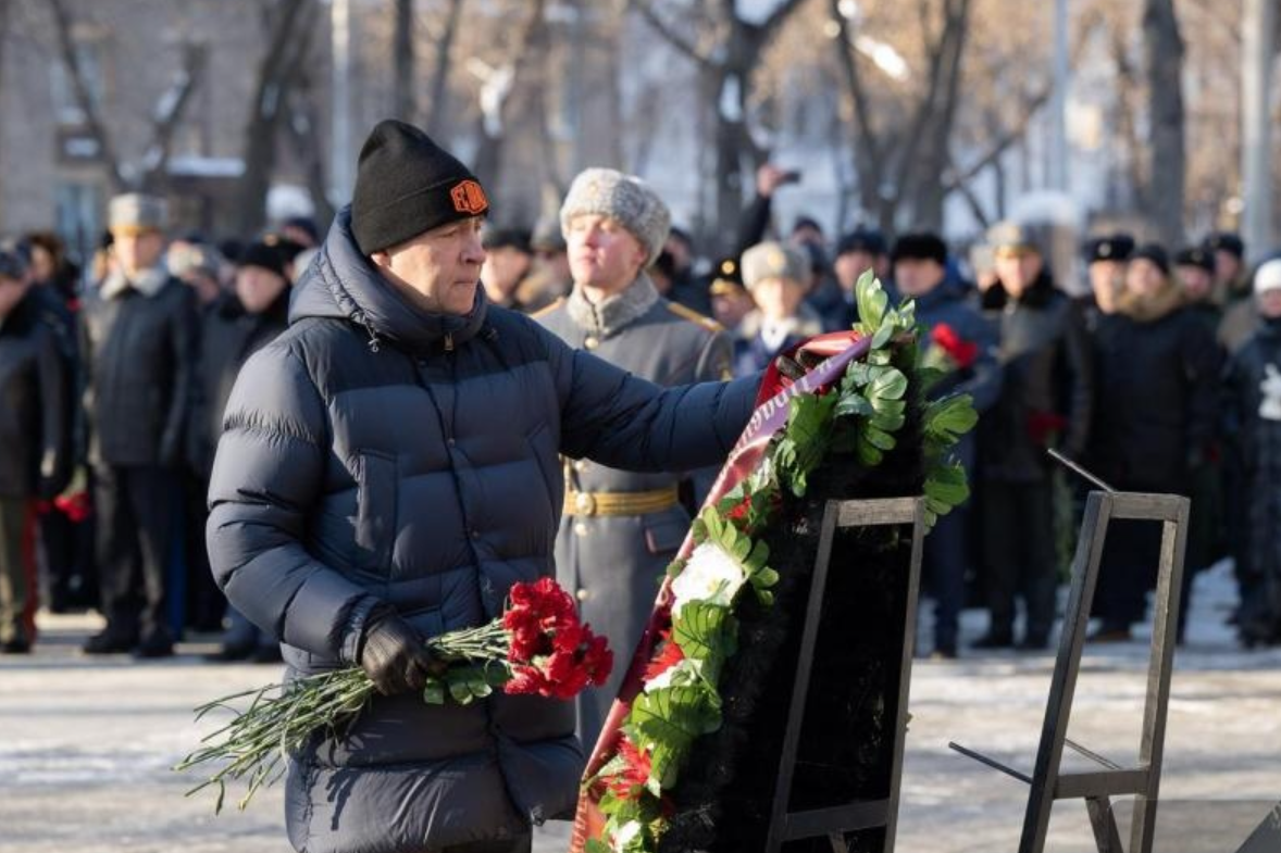 Венки и красные гвоздики к памятнику также возложили исполняющий обязанности командующего войсками ЦВО Дмитрий Глушенков, заместитель полномочного представителя Президента Российской Федерации в Уральском федеральном округа Александр Калиберда, председатель Законодательного Собрания Свердловской области Людмила Бабушкина, глава Екатеринбурга Алексей Орлов, а также руководители силовых ведомств, участники общественных и военно-патриотических организаций, юнармейцы и ветераны.