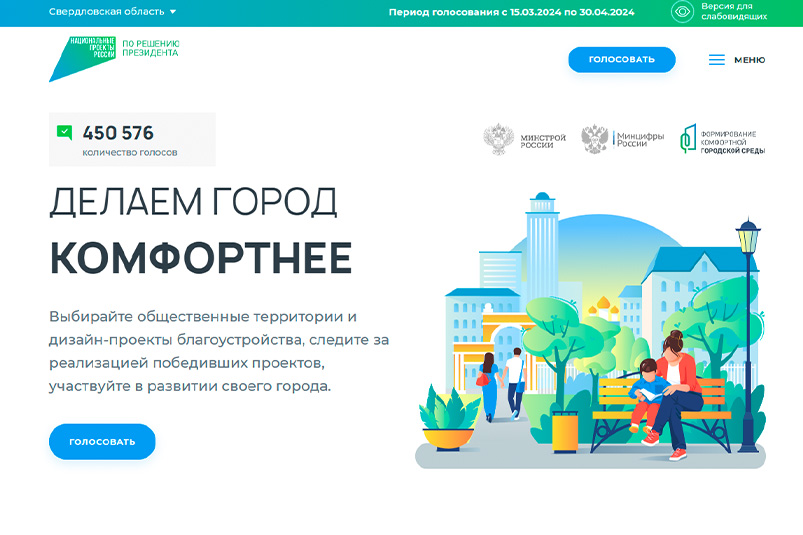 Напомним, голосование за объекты благоустройства проходит с 15 марта по 30 апреля в рамках федерального проекта «Формирование комфортной городской среды» национального проекта «Жильё и городская среда». Минимальный возраст участников голосования - 14 лет. В Свердловской области на выбор жителям представлены 168 общественных пространств. Каждый участник может выбрать одну территорию для благоустройства или проголосовать за дизайн-проекты ранее отобранных территорий. Сделать это можно с помощью волонтеров или на сайте. Общественные территории, набравшие наибольшее количество голосов, благоустроят уже в 2025 году.