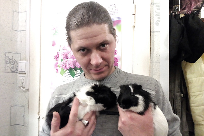 Кстати, как кошки уживаются в доме с другими животными? По рассказу Сергея, за морскими свинками и рыбками они наблюдают часами, как бы медитируя. А вот к тритонам равнодушны. Сам Сергей с детских лет увлечен грызунами. Раньше держал джунгарских хомячков, «джунгариков». Когда в доме появился Барсик, он открыл охоту на этих пушистиков: ловил и съедал. К свинкам же держит нейтралитет...