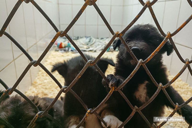 В соседнем вольере жалобно скулят и просятся на ручки четыре черных комочка. «Малявкам — месяц от роду, отловлены с улицы Комсомольской, — поясняет Юлия. — Всего щенков было шесть, двоих удалось пристроить. А их маманя в ветблоке, уже простерилизована». С мамой малышей мы тоже познакомились: миниатюрная брюнетка, молчаливая и грустная. Как и сама история собачьего семейства.