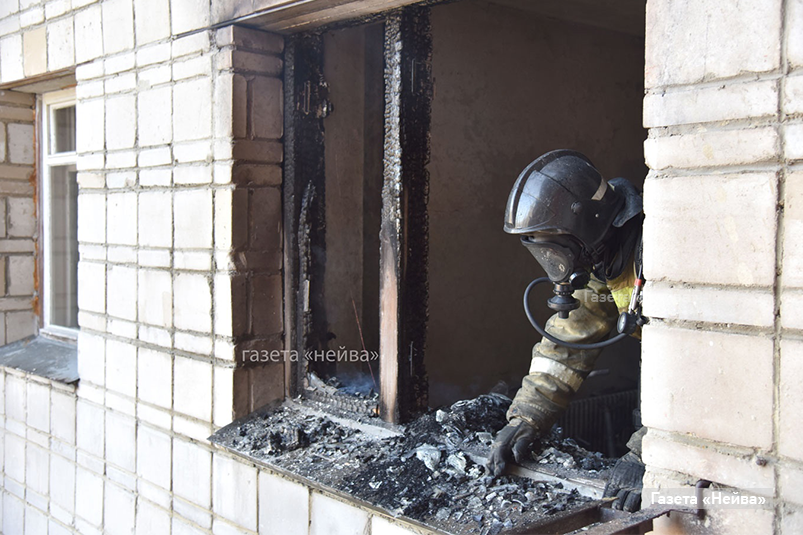 В этот день в доме № 1 МКР 15 произошёл пожар. Вспыхнули вещи, хранящиеся в колясочной на 4 этаже (на фото). Общая площадь пожара составила 12 кв.м.