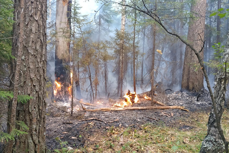 В зоне возгорания много сухостойных деревьев, которые активно схватываются и горят — языки пламени поднимаются на высоту до 5 метров. Чтобы остановить огненного «дракона», вчера огнеборцы свалили несколько сухостойных деревьев. Тем самым был остановлен верховой пожар.