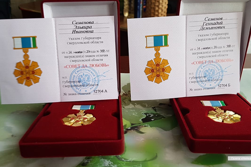 «Знак «Совет да любовь» вручается парам, которые прожили вместе не менее 50 лет. Это благодарность и поощрение за создание крепкой семьи. Оба супруга получают еще и по пять тысяч рублей. Всего с 2011 года награды получили более 57,1 тысячи семейных пар», — рассказал министр социальной политики Свердловской области Андрей Злоказов.