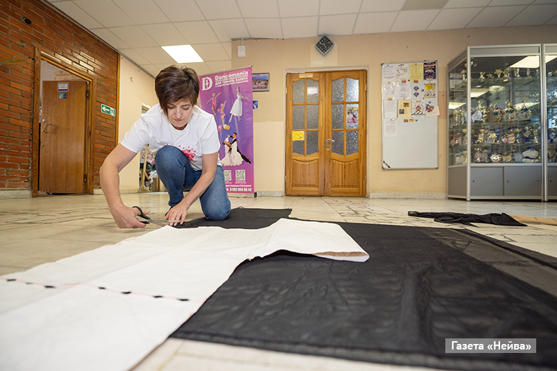 Лариса Бархатова помогает плести сети больше полугода. Ее задача — разрезать длинные полосы на короткие. «Ткань толстая, обычные ножницы быстро тупятся, а к тяжелым надо привыкнуть. Я себе какое-то время даже пальцы пластырем заклеивала, чтобы мозоли не натирать», — рассказывает она.