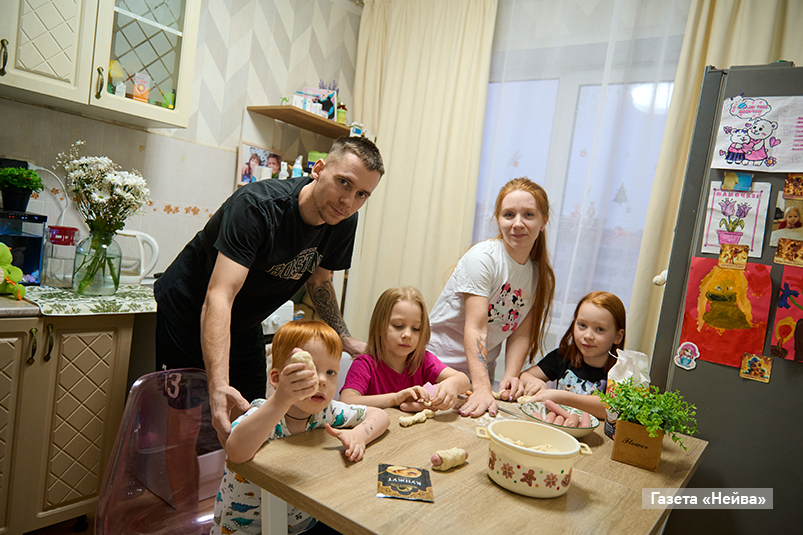 Максим работает на УЭХК по сменам. Елена — в детском саду рядом с домом. «Дети у нас — на первом месте, — говорит Елена. — Старшая Алина учится во втором классе, занимается акробатикой. Дочке Диане — 6 лет, Тимоше — 4, они ходят в детский сад, посещают платные кружки. Все одеты, обуты, окружены вниманием и заботой. Я как мама, жена и хозяйка — хорошая».