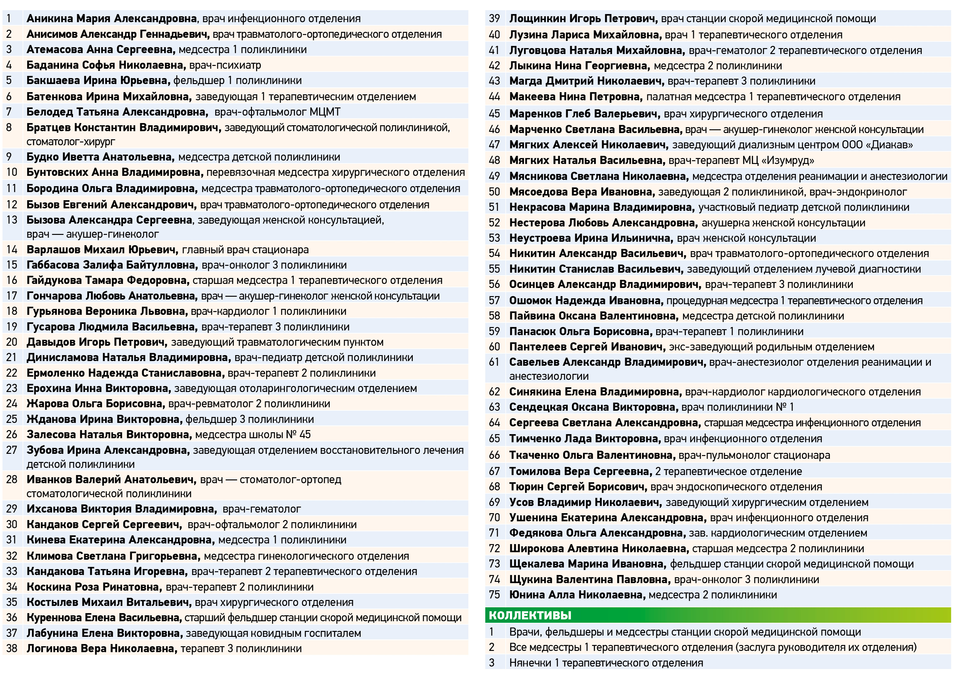 А вчера в адрес редакции поступило письмо за подписью начальника ЦМСЧ-31 Андрея Морозова, в котором он в свою очередь благодарит редакцию «Нейвы» за такую сердечную поддержку медицинских работников. А главное — руководство медсанчасти тоже решило наградить победителей благодарностями и премией!