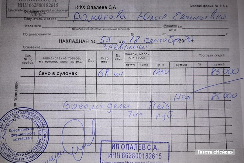 85 тысяч ушло на покупку сена. Юлия закупила 68 рулонов по 1250 рублей, предприниматель сделал скидку, так как закупалась крупная партия сена. Животным хватит корма на ближайшие три месяца.