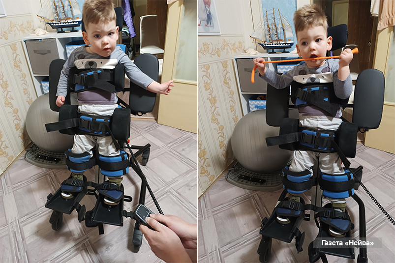 Но родители рук не опускают и верят, что систематические занятия с помощью специальных средств реабилитации помогут их малышу встать на ножки.