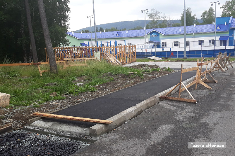 В данный момент подрядчик ожидает поставки резинового покрытия для площадки. Такое покрытие в Новоуральске есть, например, вокруг футбольного поля у КСК.