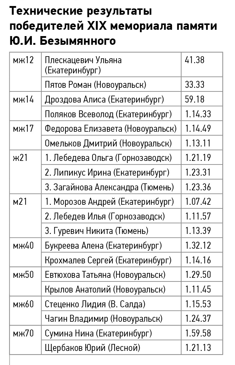 Как сказала дочь Юрия Ивановича Елена, обращаясь к собравшимся, среди которых было более половины юных спортсменов: «Эти соревнования мы проводим для вас, чтобы молодежь знала и помнила, что был такой человек, основавший школу уральского ориентирования, ставшую в дальнейшем известной на весь мир».