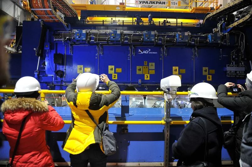 Плавится титан в абсолютном вакууме — как в космосе, при температуре 1800 градусов. И это взрывоопасный процесс. Кстати, на ВСМПО-АВИСМА — самый большой плавильный цех в мире по количеству плавильных печей, их здесь 48. Ну а дальше слиток отправляется на множество переделов в других цехах ВСМПО, которые мы едва посмотрели за полдня. Вот такой размах!