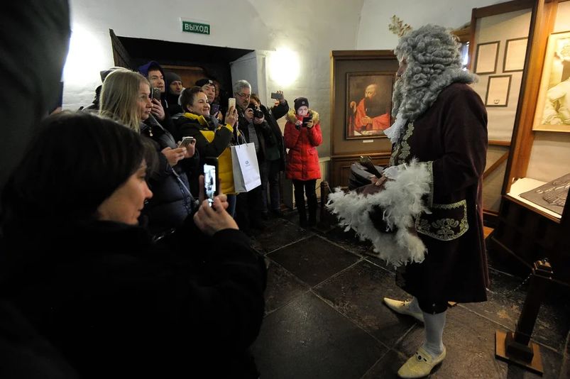 Еще одна местная достопримечательность — голуби, которые свили гнездо у соседнего Спасо-Преображенского собора. Как только распахивается дверь мастерской, где сегодня чеканят памятные монеты, голуби, прибрав крылья, гуськом шлепают на завтрак, обед и ужин.