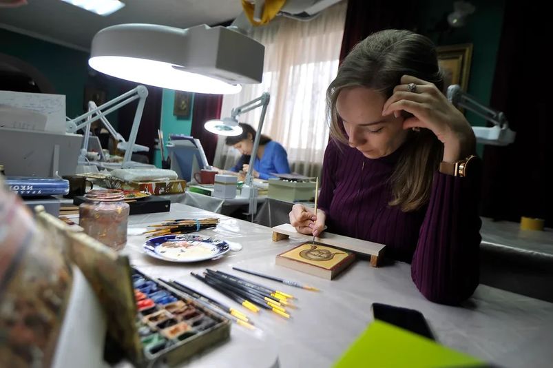 Поэтому не случайно появилась здесь иконописная мастерская, где иконы пишут уже современные мастера. Одна из икон — образ Богородицы «Умиление» — была преподнесена английской королеве Елизавете и находится сегодня в Букингемском дворце.