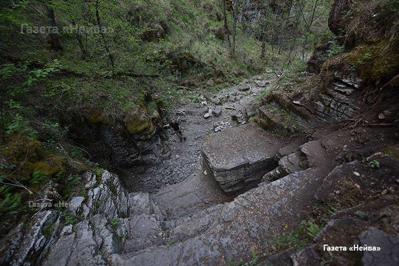 Мы стоим на вершине глубокого оврага и задумчиво глядим на тропу с осыпями, круто уходящую вниз. Сомневаемся: «Идти ли?» Знаем: там внизу Сухие водопады — интересная природная достопримечательность рядом с Малыми Притёсами реки Ай. Но мы только что отшагали вверх-вниз по Большим Притёсам, по полям и дорогам, и наши ноги категорически против ещё одного марш-броска.