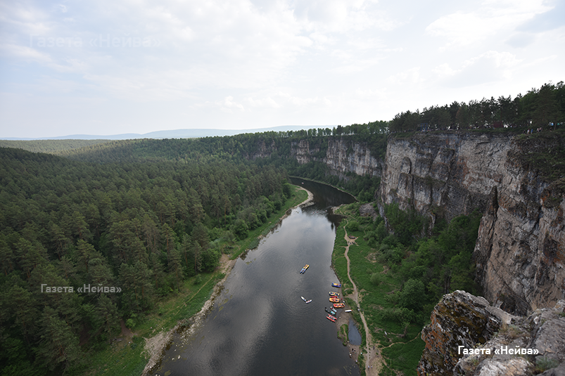 И вот они. Высоко стоим, далеко глядим. А близко и смотреть не стоит — всюду суета и мельтешение. Притёсы — давно уже не безлюдные скалы над рекой Ай. Сотни людей на скалах, сотни — на берегу под ними. Нынче там целый экстрим-парк: домики с электричеством, кемпинги, туалеты, кафешки, лавки, смотровые площадки, роупджампинг, зиплайн и прочее. Цены — не божеские, но от желающих отбою нет. Только лестница от верха до реки — бесплатно: 130 метров набора высоты, 409 ступеней, площадочки для перекура, пол-литра пролитого пота. Красота! Хотя ещё года полтора назад там не было никакой лестницы — тропа и верёвка для удобства при подъёме.